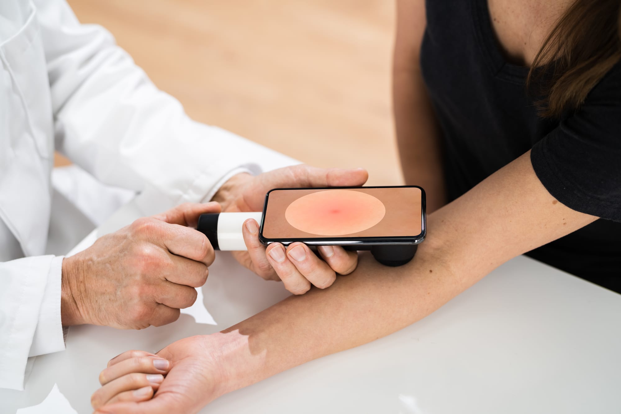 DermAI enhances and analyzes the images by using AI, flagging suspicious areas and generating a preliminary report.